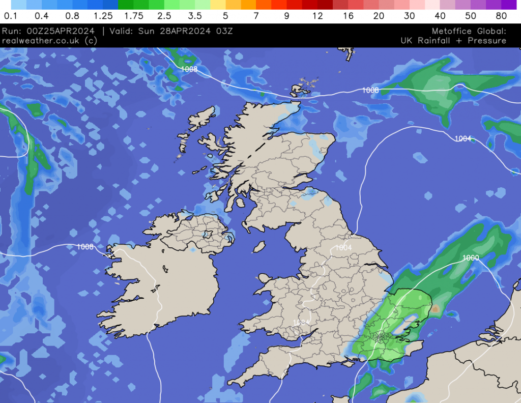 The frontal system will be slow moving on its journey north, so certainly a wet overnight period to come Friday night into Saturday as the front positions across central areas! The system will then move into Yorkshire and Lincolnshire through Saturday morning, eventually clearing through the day.