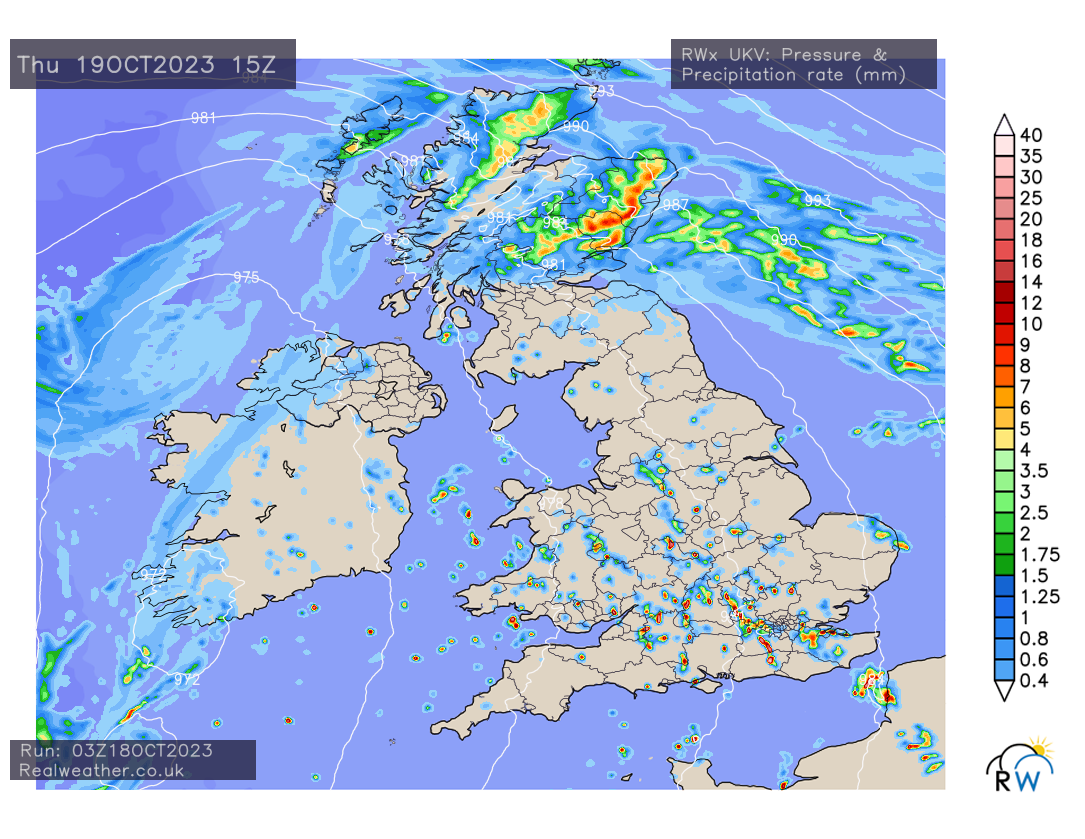 On Thursday afternoon we see the risk of some rather heavy downpours developing across parts of England and Wales, especially in the Midlands/Central and southeastern parts of England. Looking at the energy profile of the Atmosphere we could see some rather lively ones develop locally.