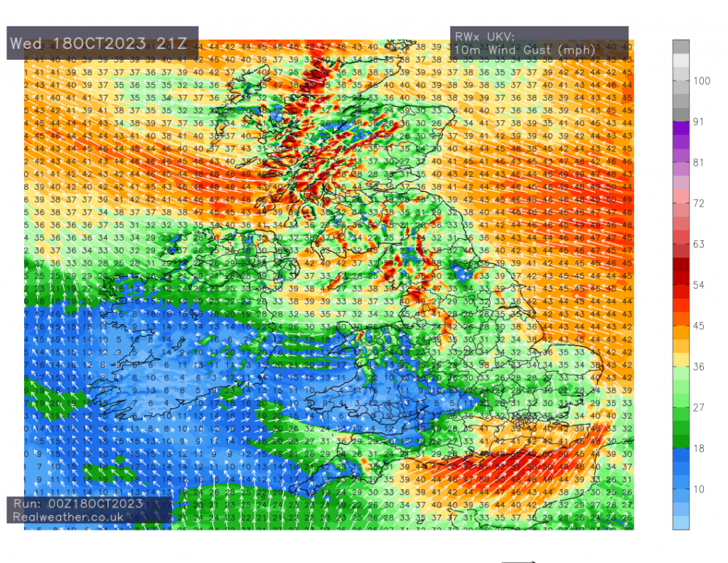 Strong winds will also affect southern, southeastern and eastern parts of England this evening and tonight. Gusts in excess of 50mph can be expected for a time. Gusty winds will continue along North Sea coasts as we head in to Thursday and Friday.